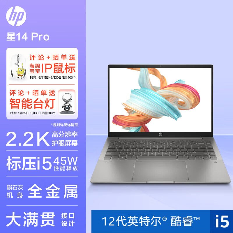 惠普HP 星14 Pro 14英寸高性能轻薄笔记本电脑(12代i5-12500H标压 16G 512G 2.2K高分屏 硬件 护眼)陨石灰