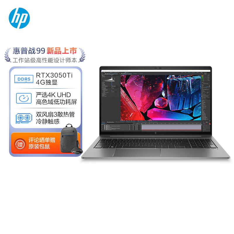 惠普(HP)战99 2022 15.6英寸高性能笔记本电脑设计师创作本工作站 12代i7-12700H 32G 1TSSD RTX 3050Ti 4K屏