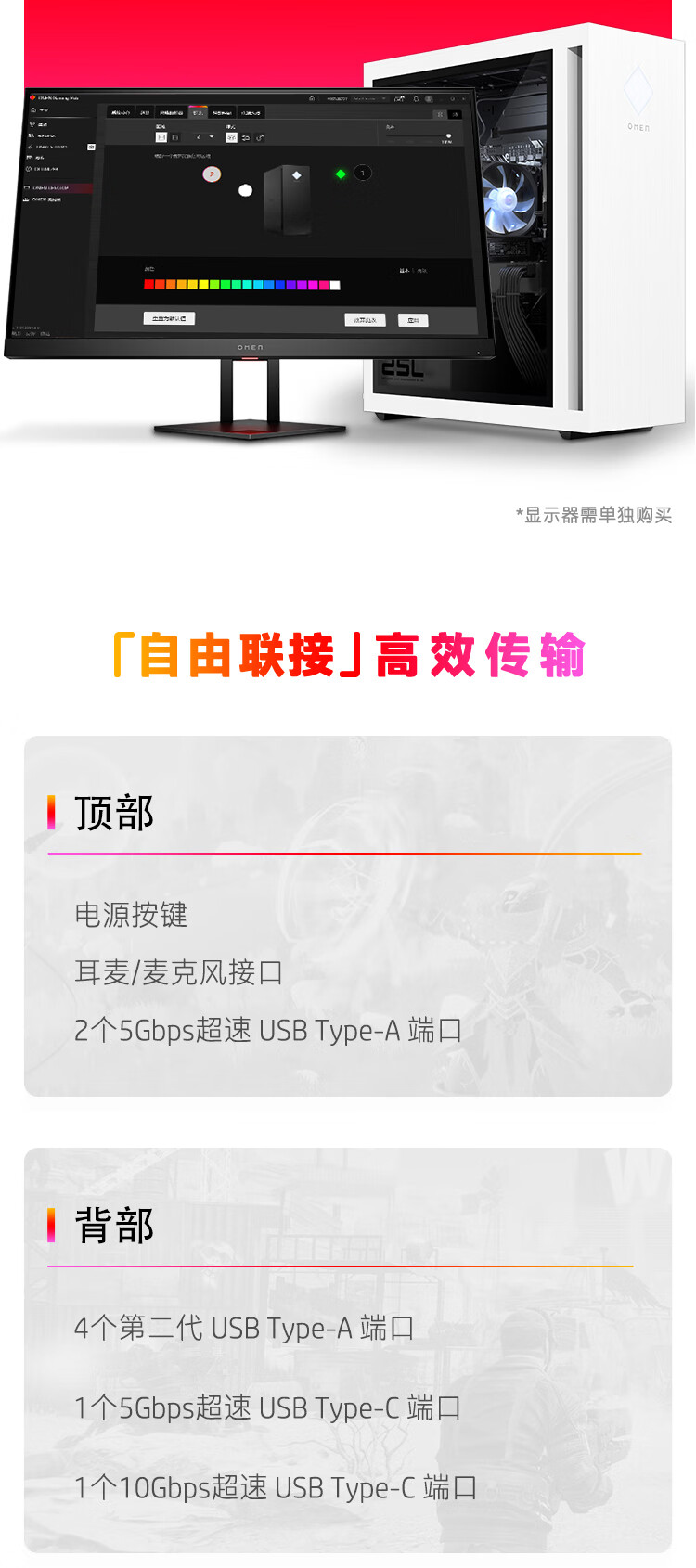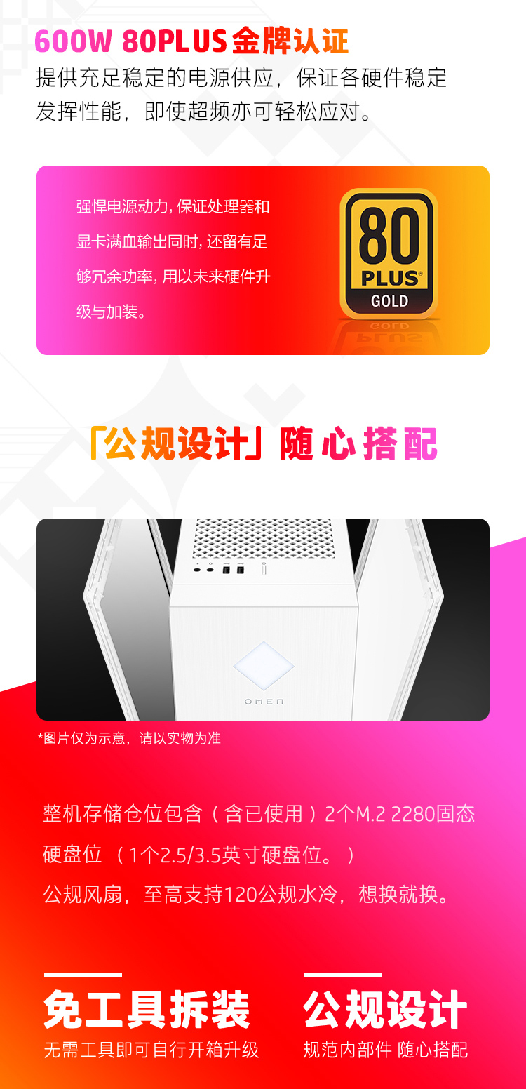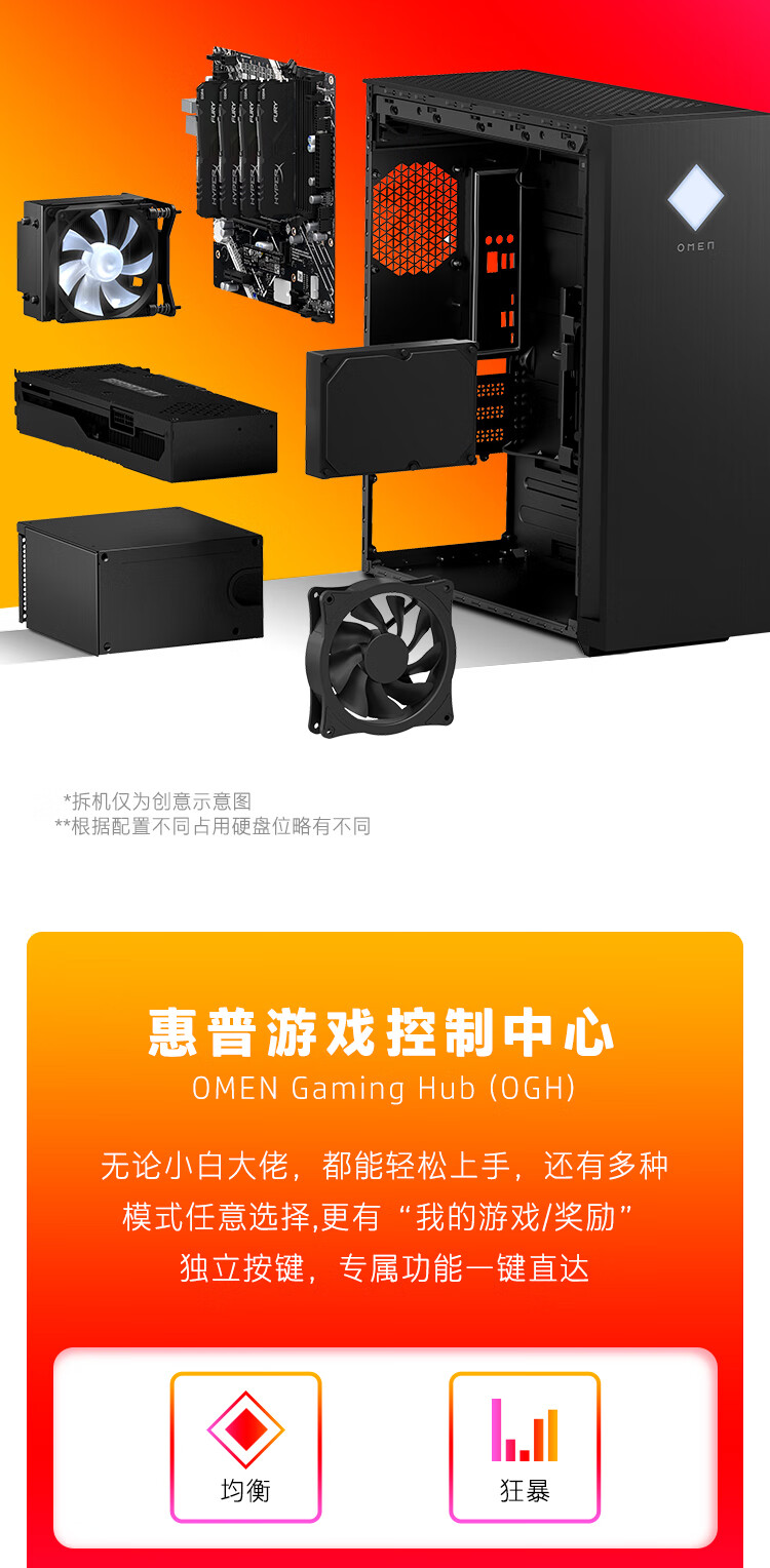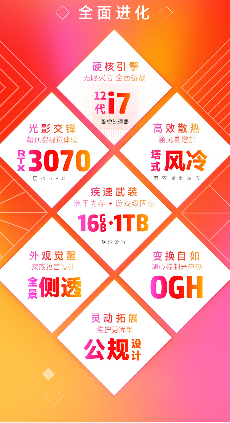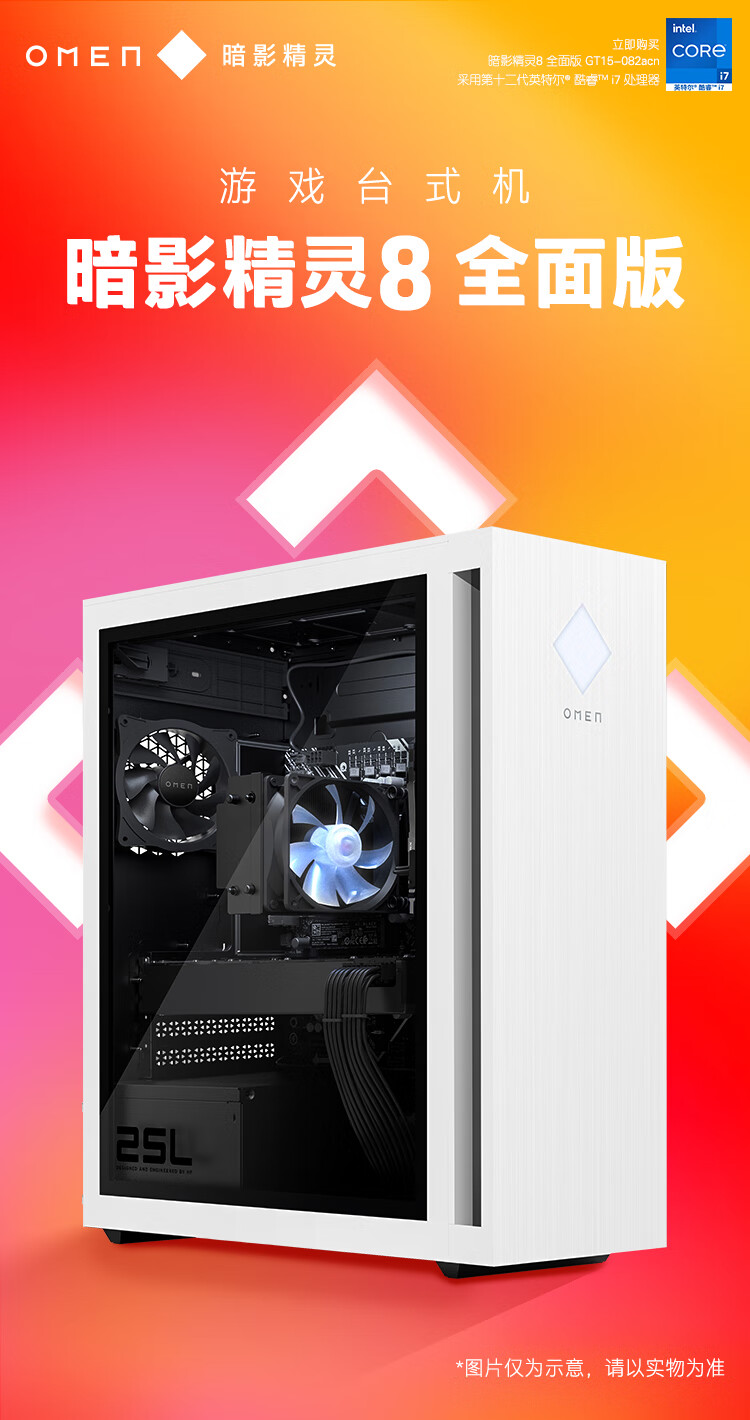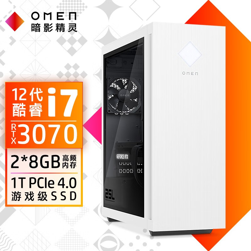 惠普HP 暗影精灵8 台式电脑 游戏台式机主机 侧透 12代i7-12700F RTX3070 8G独显 16G 1TSSD 全面版 自营