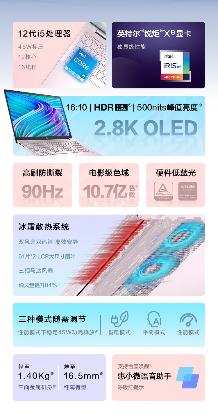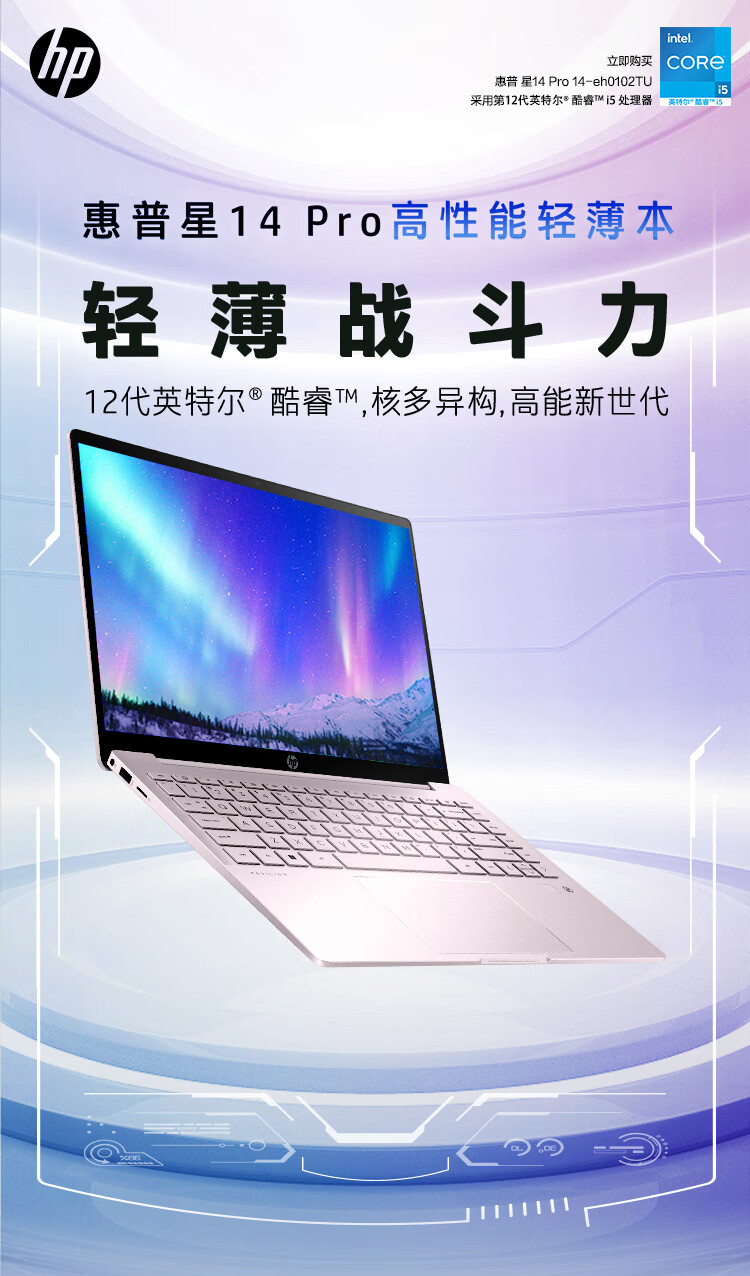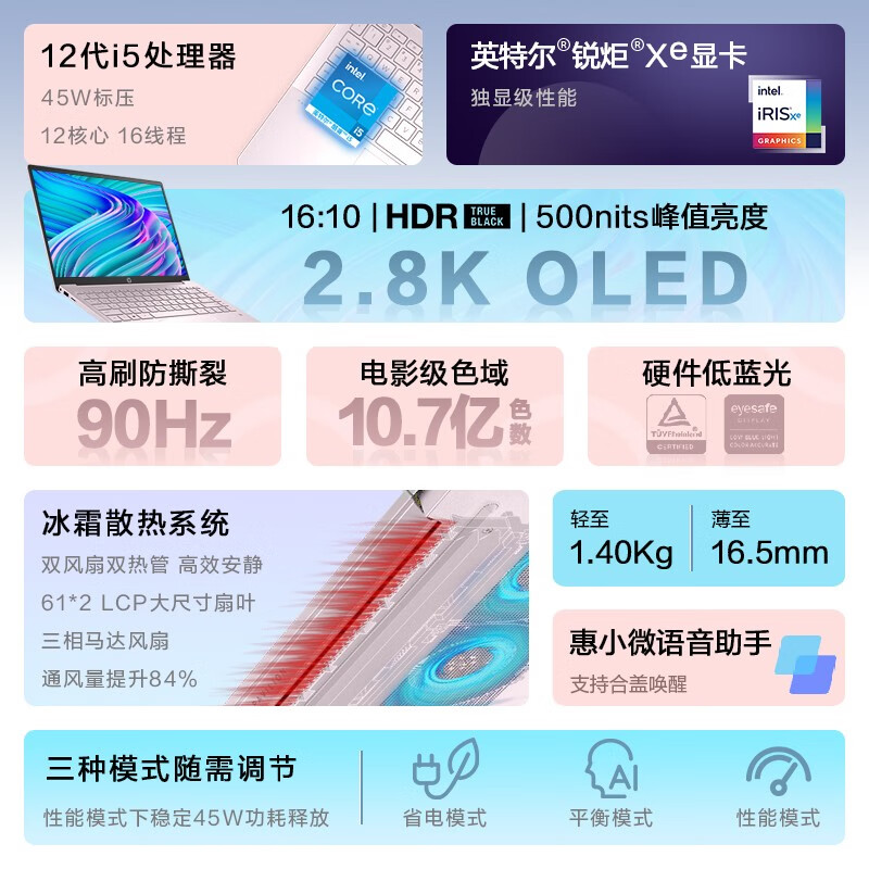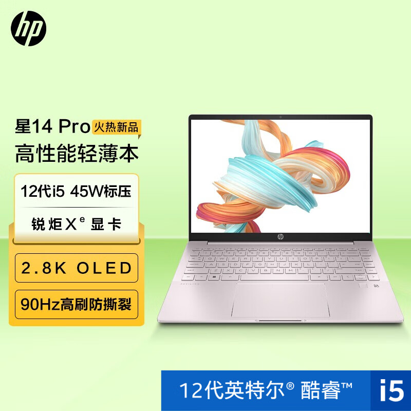 惠普HP 星14 Pro 14英寸轻薄笔记本电脑(12代i5-12500H 2.8K 90Hz高分高刷屏 100%DCI-P3电影级色彩)初恋粉 自营