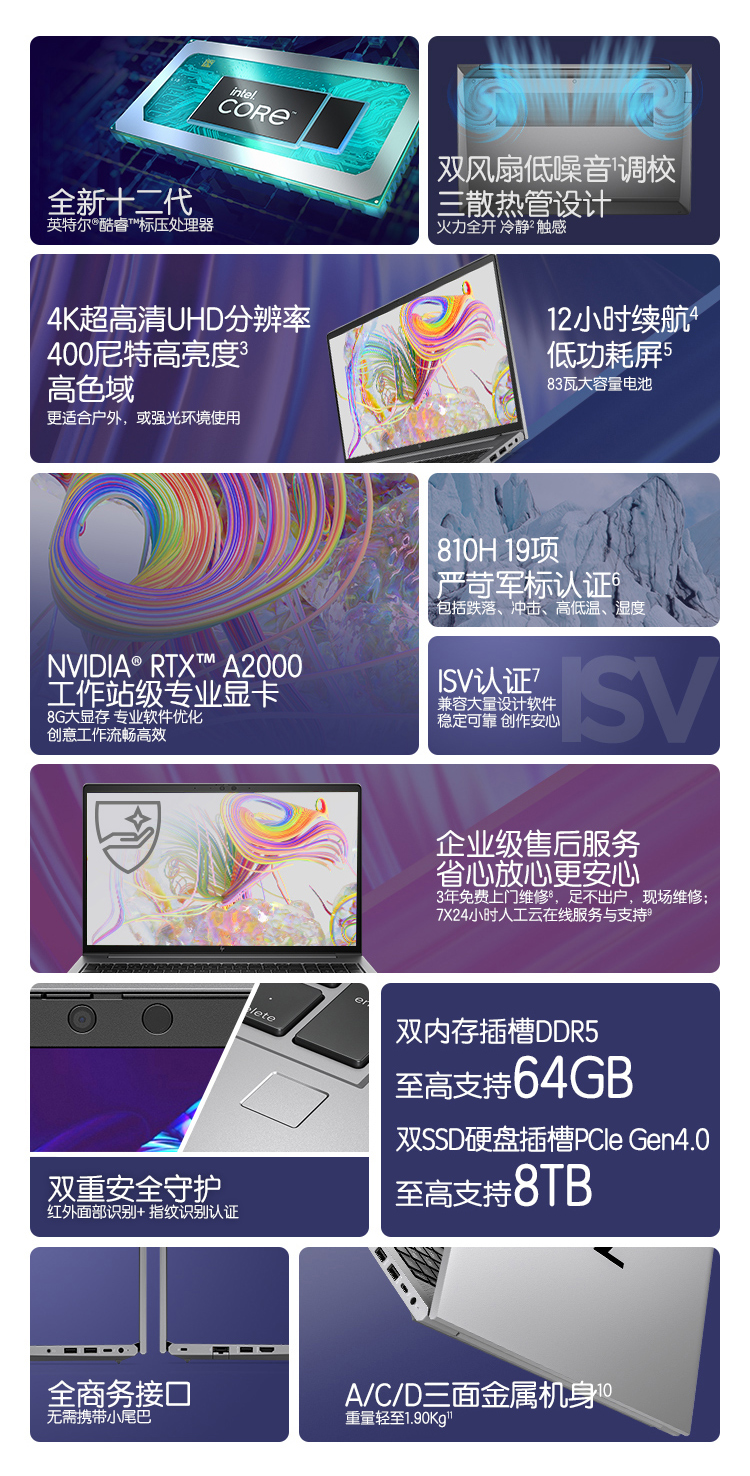 惠普(HP)战99 2022 15.6英寸高性能笔记本电脑设计师创作本工作站 12代i7-12700H 32G 1TSSD RTX A2000 4K屏 自营