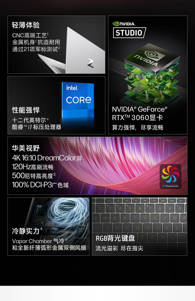 惠普(HP)战99 Studio 16英寸高性能轻薄笔记本电脑Nvidia Studio创作本12代i7-12700H 16G 512G RTX3060 4K屏 自营